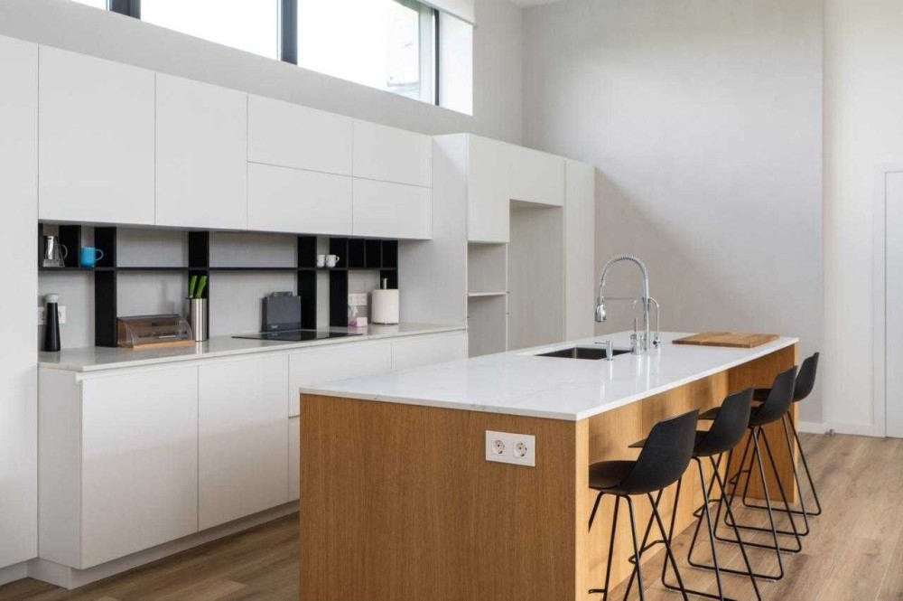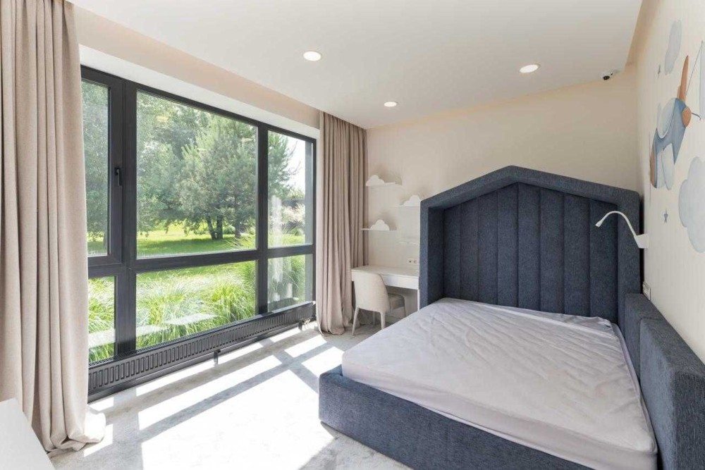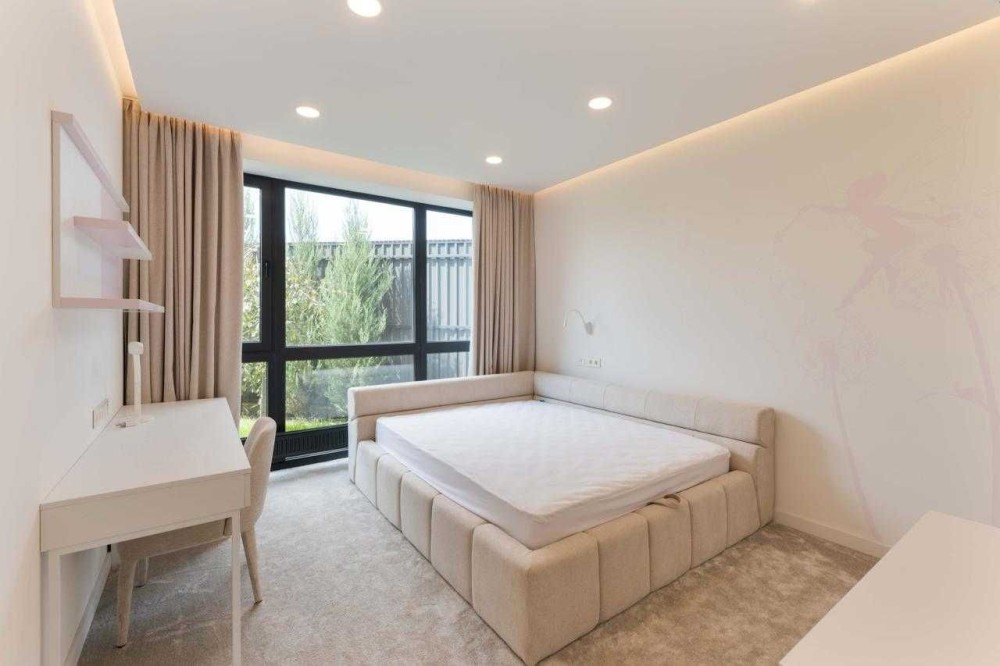 У будинку велика кухня-вітальня з виходом на терасу, майстер-спальня з гардеробною та санвузлом, дві дитячі кімнати з гардеробними, гостьовий санвузол, технічні приміщення, просторий хол.