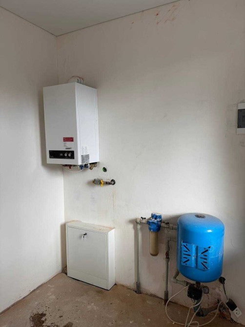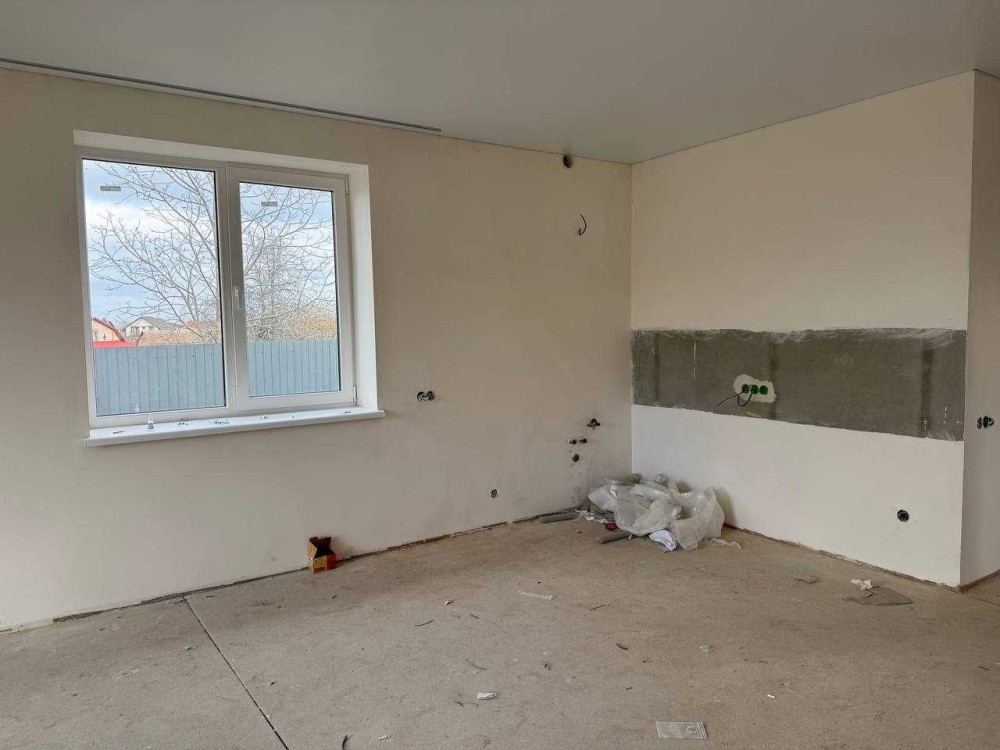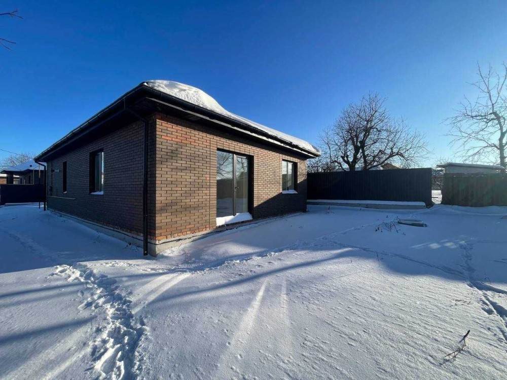 - Площа будинку 100м2, три житлових кімнати, суміжний санвузол, котельня та кухня-вітальня.