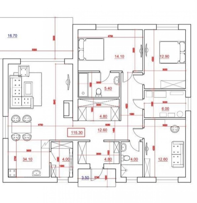 простора кухня вітальня з виходом на криту терасу; 3 спальні кімнати з нішами під гардероб; 2 сан вузла; кімната інженерії.