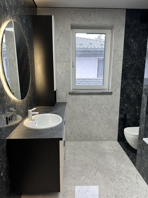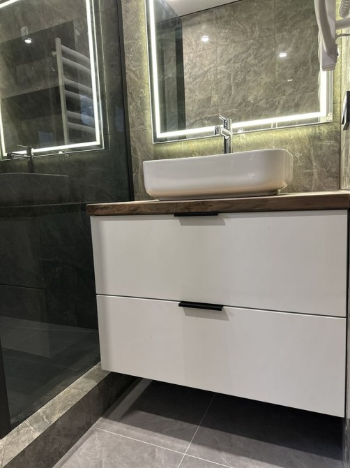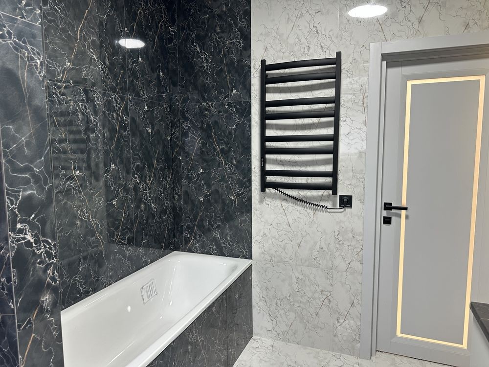 Ванні кімнати укомплектовані сантехнікою + зроблені гардеробної зони з шафами.