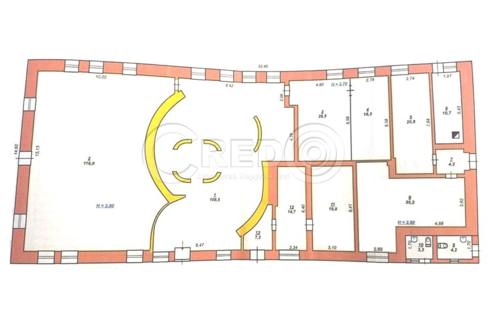 - Дві великих зали та 8 кабінетів