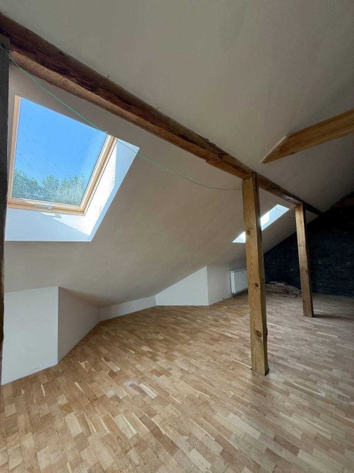 Мансарда - паркет масив дуба та стіни із натурального Болгарського каменю "смарагд"