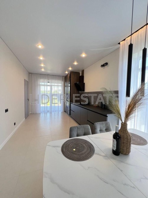 Продається повністю укомплектований стильними меблями з побутовою технікою (телевізор, варильна панель, електроплита та ін.), меблями та інтернетом Wi-Fi. Усі вікна панорамні, є камін.