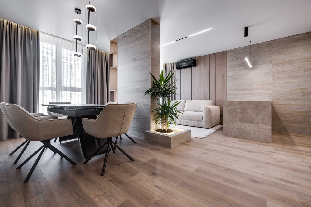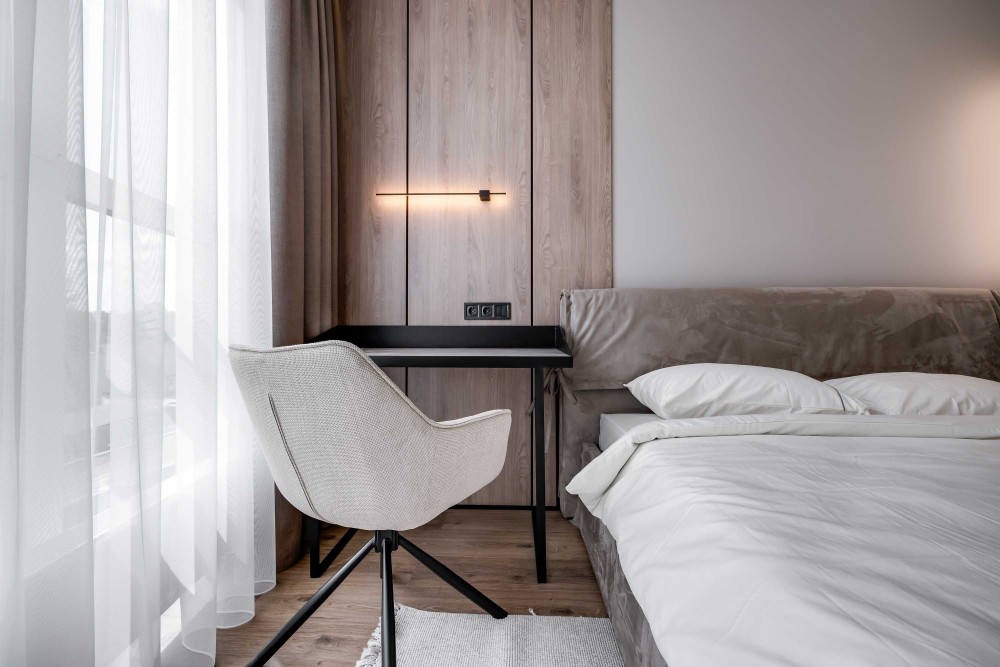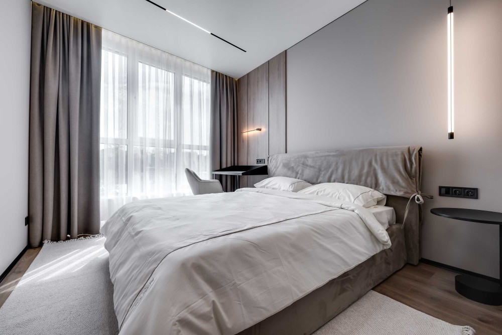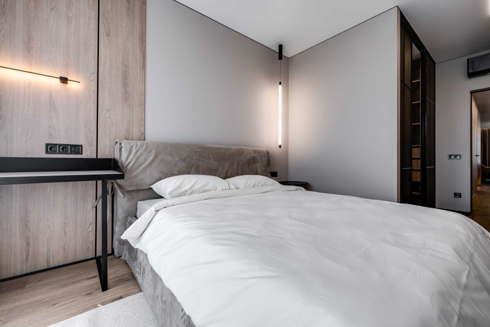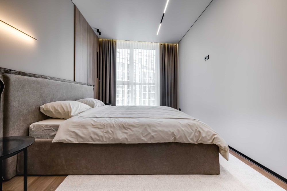 Зонування: 2 ізольовані спальні, з гардеробними , санвузол з ванною та та кухня-вітальня.