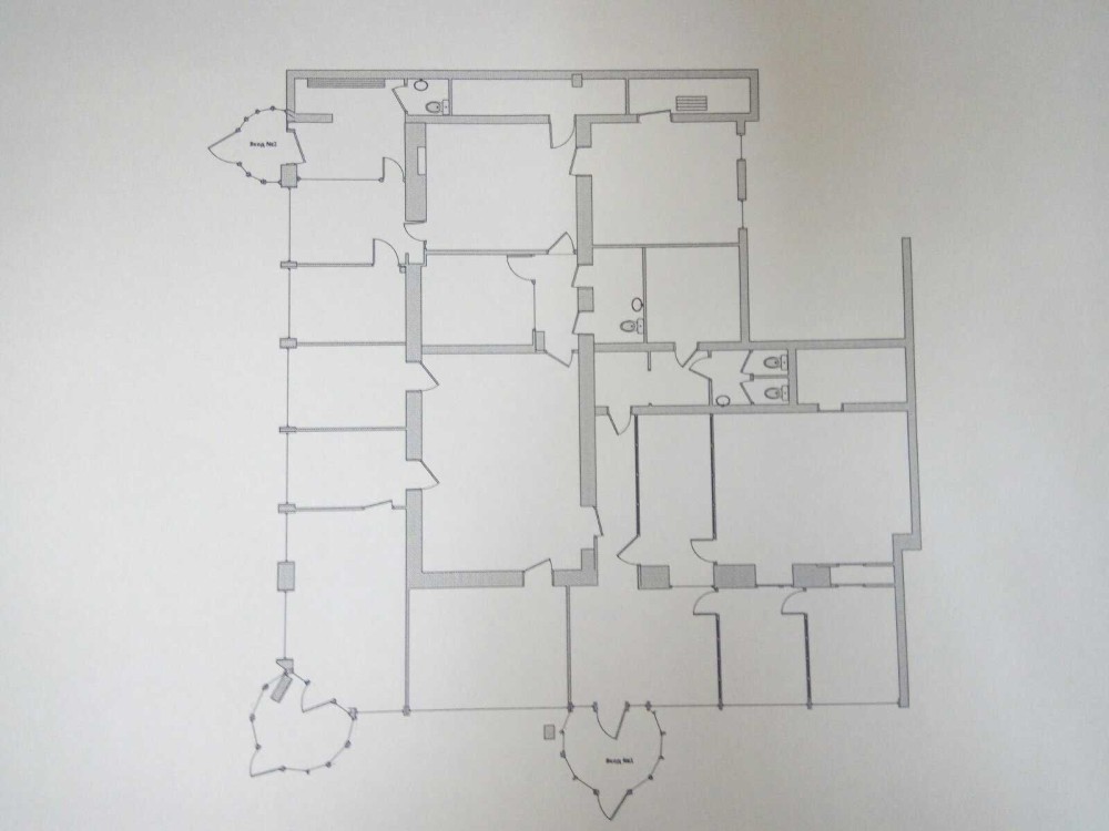 - загальна площа 390 кв.м – кабінетна система (можливий легкий демонтаж металопластикових та гіпсокартонних перегородок, некапітальних перестінків);