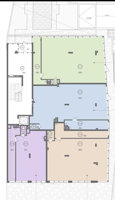 Загальна площа - 500 м2. Є можливість розбити на менші площі : 140 м2, 138 м2, 133.5 м2, 87.7 м2.