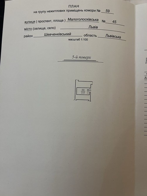 Продається нежитлове приміщення-комора вул Малогосківська 45,загальна площа 2 м.кв,висота -3 м,пʼятий поверх.
