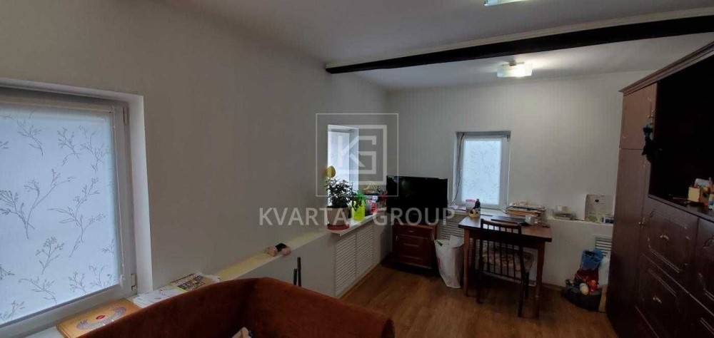 Перша частина має загальну площу 59,9 кв.м. 3 кімнати, роздягальня, окрема система опалення з природною циркуляцією та окремий газовий котел. Є окрема ванна кімната.