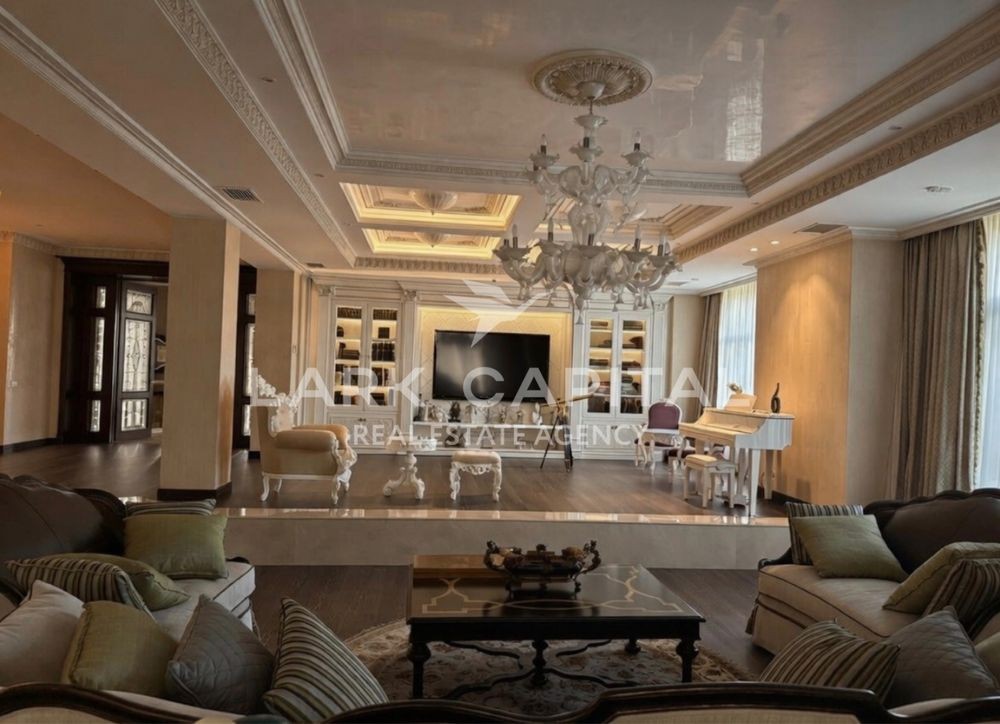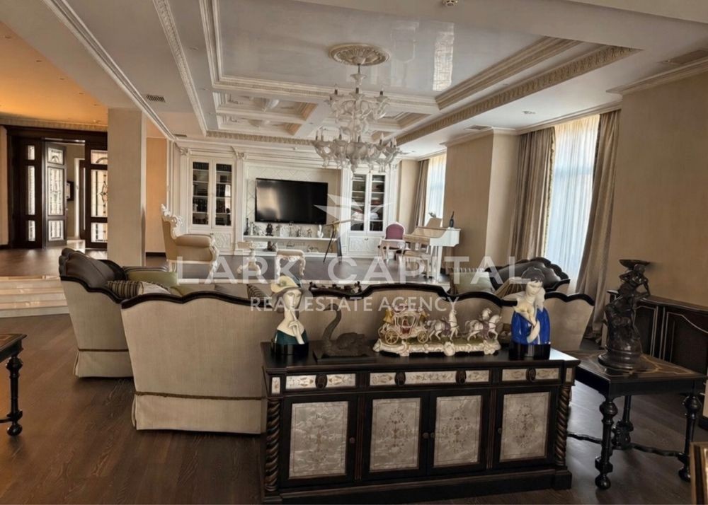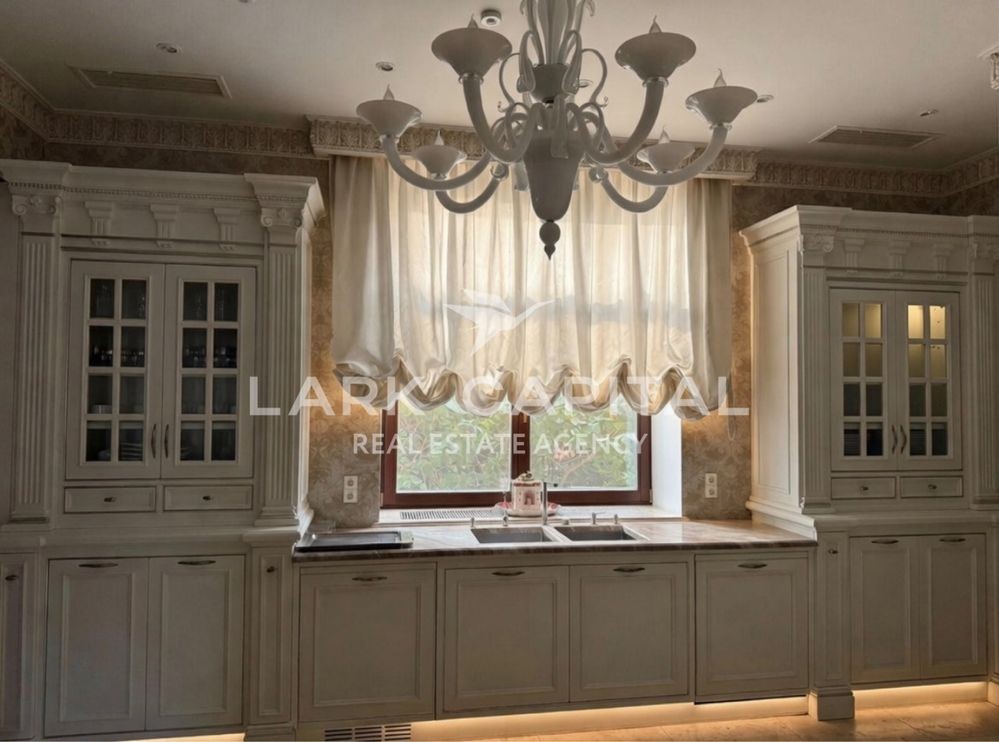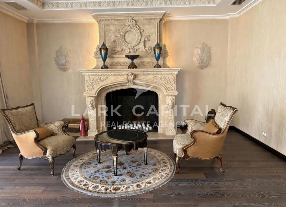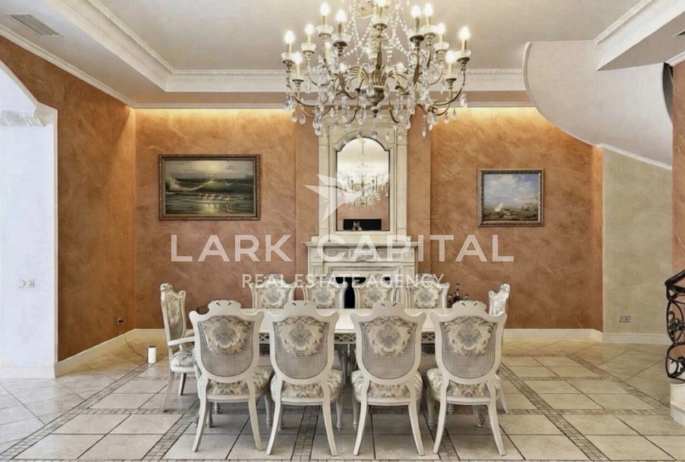 Вишукана резиденція в стилі Provence з натуральними дерев’яними меблями, мармуровими підлогами та сходами. Простора вітальня 154,6 м² з каміном, окрема столова, кухня, бібліотека та кабінет.