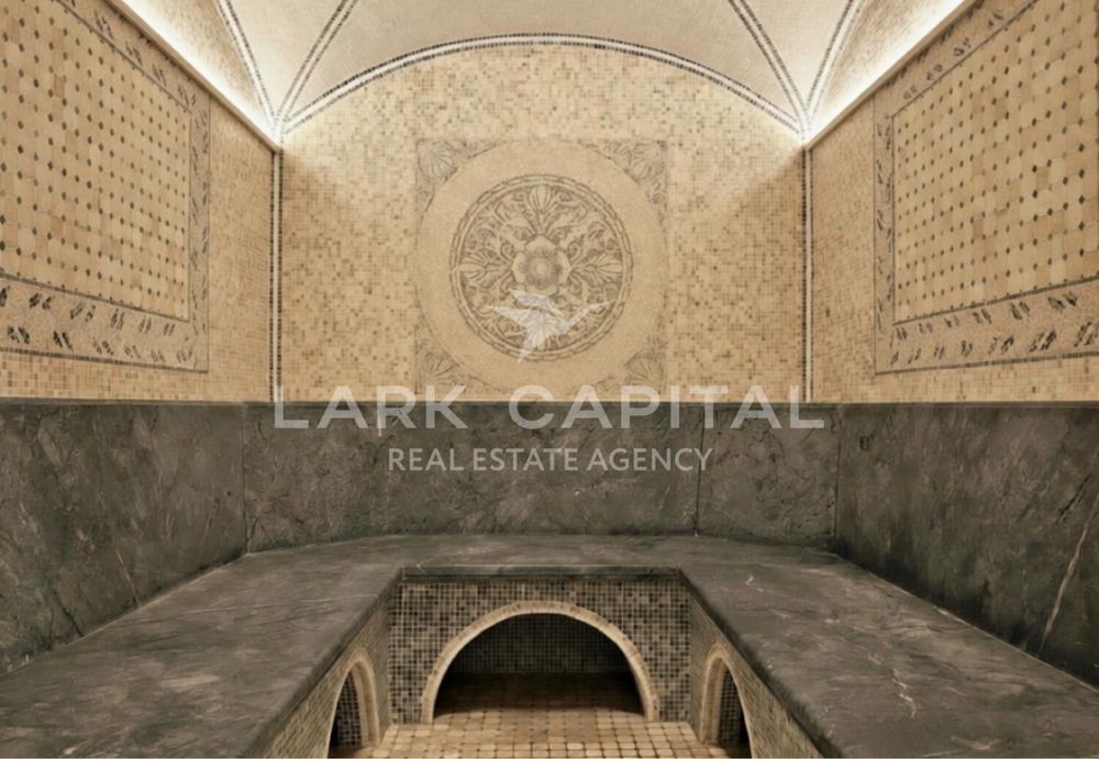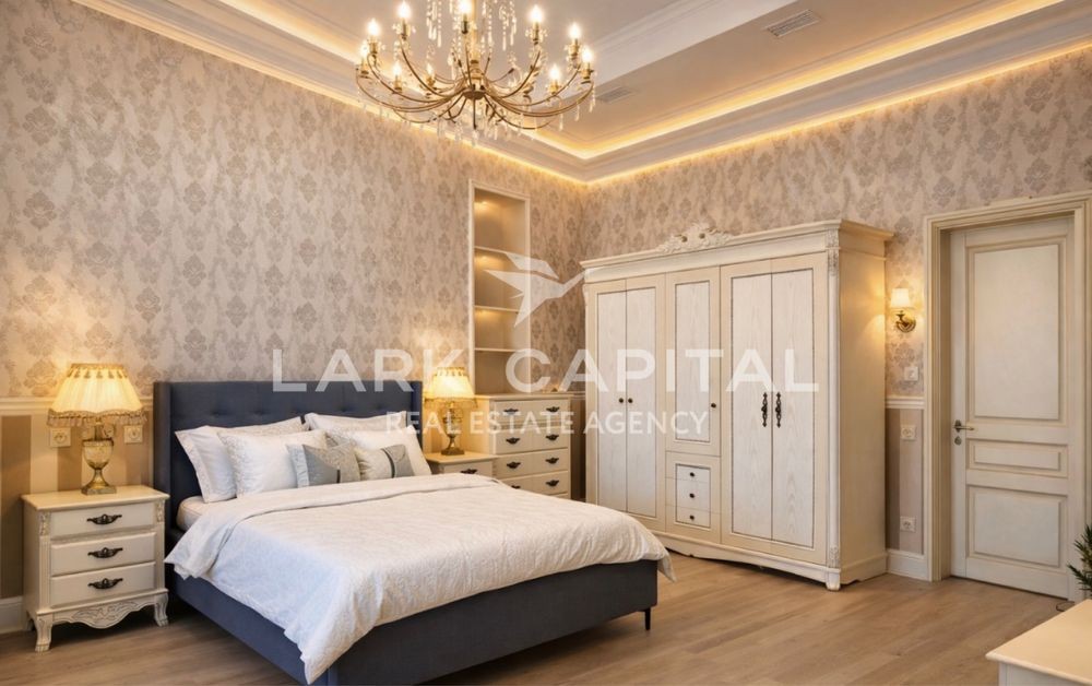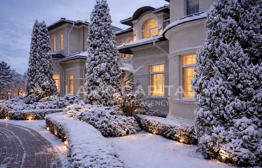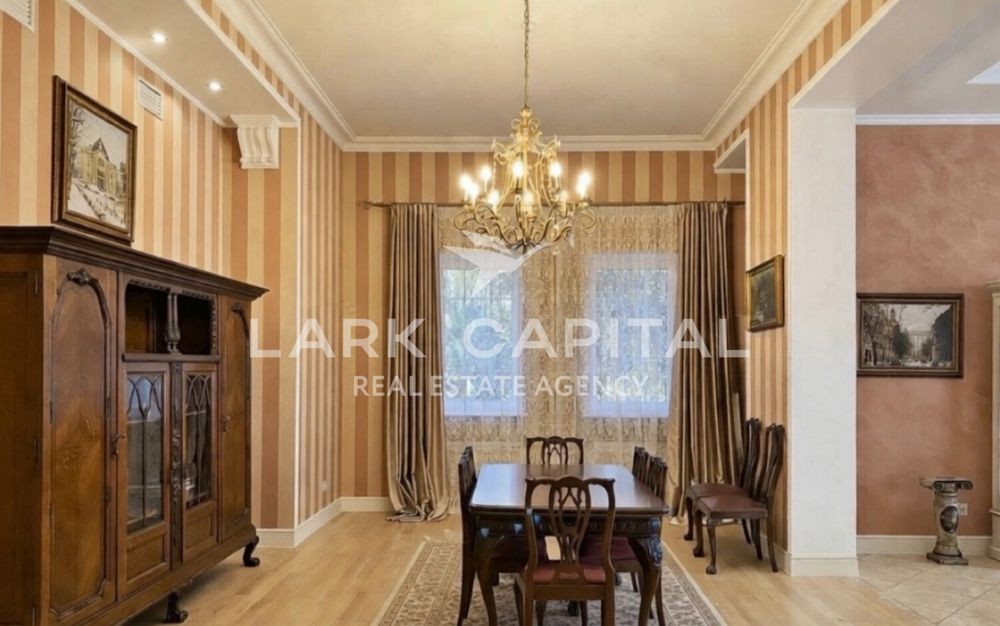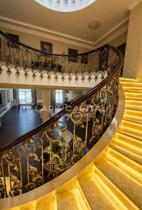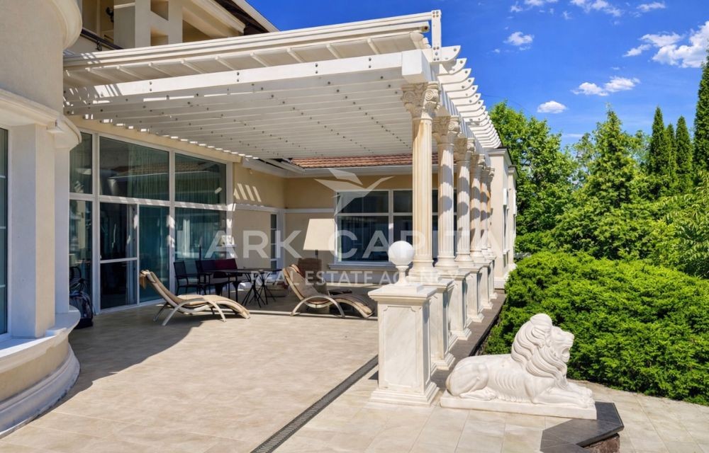 Вишукана резиденція в стилі Provence з натуральними дерев’яними меблями, мармуровими підлогами та сходами. Простора вітальня 154,6 м² з каміном, окрема столова, кухня, бібліотека та кабінет.