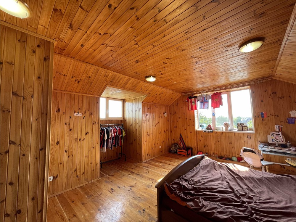 На третьому поверсі - окремий простір із деревяним оздобленням. Це особливий простір для підлітка чи творчої людини: тут легко уявити кабінет, зону для навчання чи роботи, ігровий куточок або майстерню.