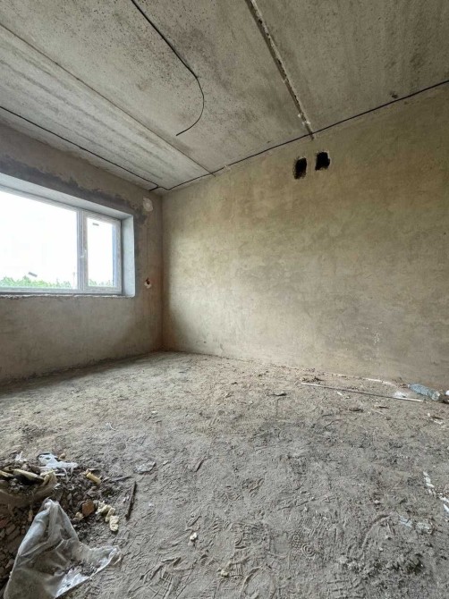 Поштукатурені стіни, встановлені металопластикові панорамні вікна, вхідні двері.