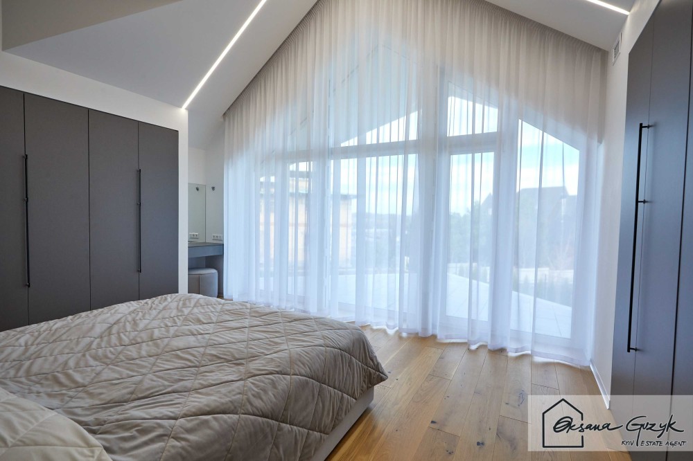 - головна спальня з гардеробом та санвузлом та видом на задній двір з можливістю спостерігати за сходом сонця;