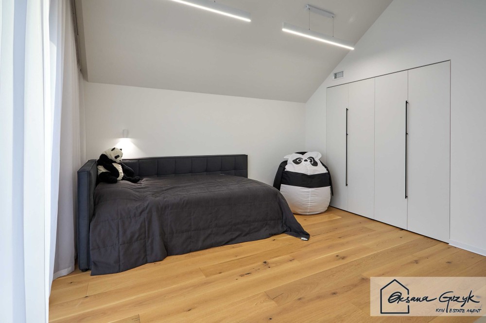 Будинок отримав декілька міжнародних нагород у категорії “Приватні будинки” і має загальну площу 297 м2, який був реалізований у надзвичайно мальовничій локації , всього за 10 кілометрів від Києва (Лісники у Обухівському районі Київської області), для молодої та творчої сім’ї.