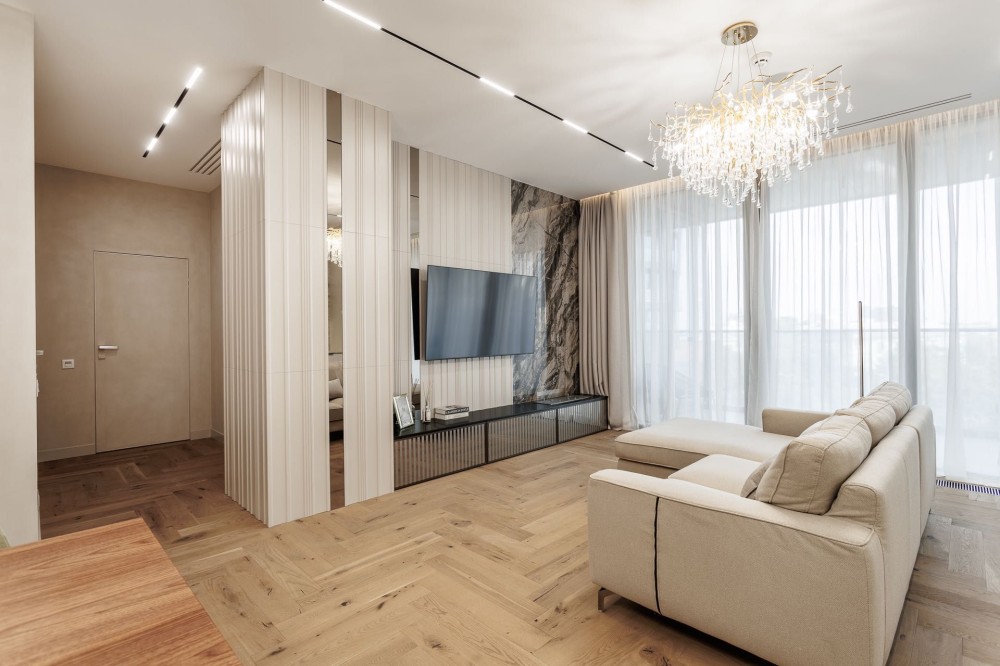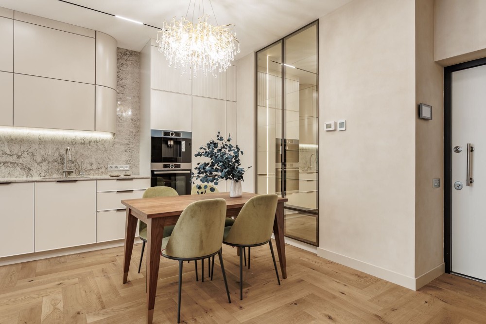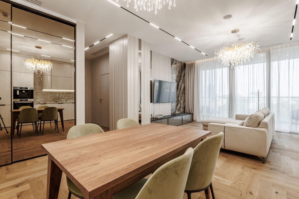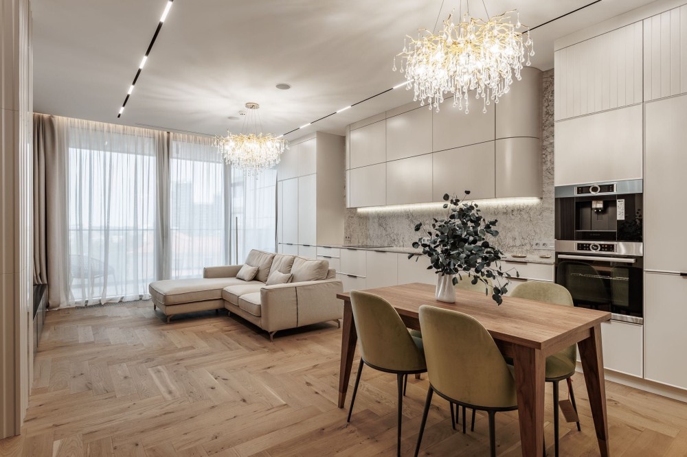 Повністю укомплектована новими стильними італійськими меблями та надійною побутовою технікою: пральна машинка Miele, сушильна машинка Miele, холодильник Bosch, варильна поверхня Bosch, холодильник Bosch, духовий шкаф Bosch, посудомийна машинка Bosch, кавомашина Bosch, сантехніка VilleroyBosh, Fiore, Geberit, вимикачі Niessen, кухонна мийка Franke, для комфортного життя.