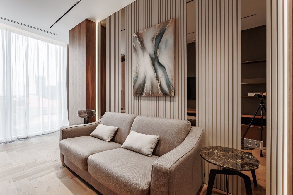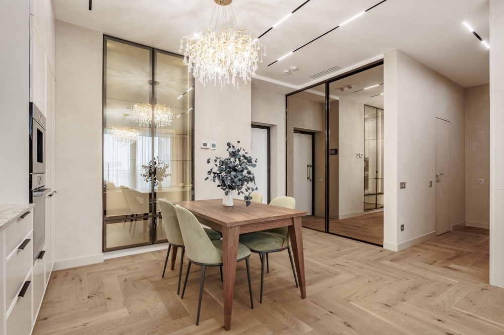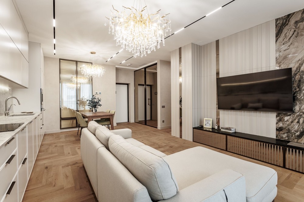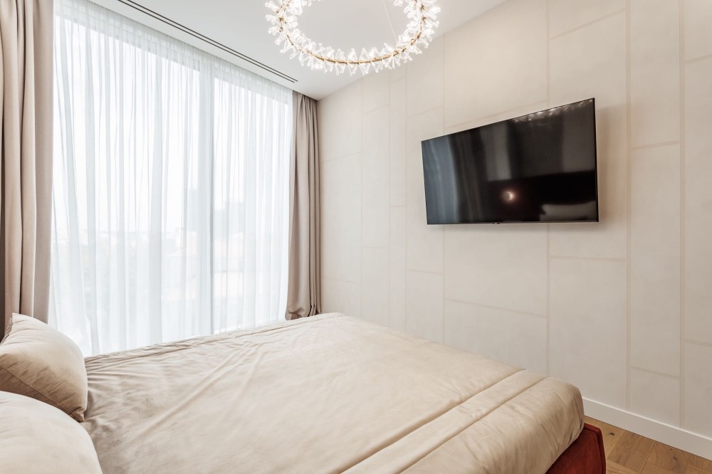 Кондиционер, Подогрев полов, Ванна, Душевая кабина, Мебель на кухне, Гардероб, Терраса, Панорамные окна, Консъерж, Охраняемая территория, Гостевой паркинг, Подземный паркинг, Лифт, Грузовой лифт