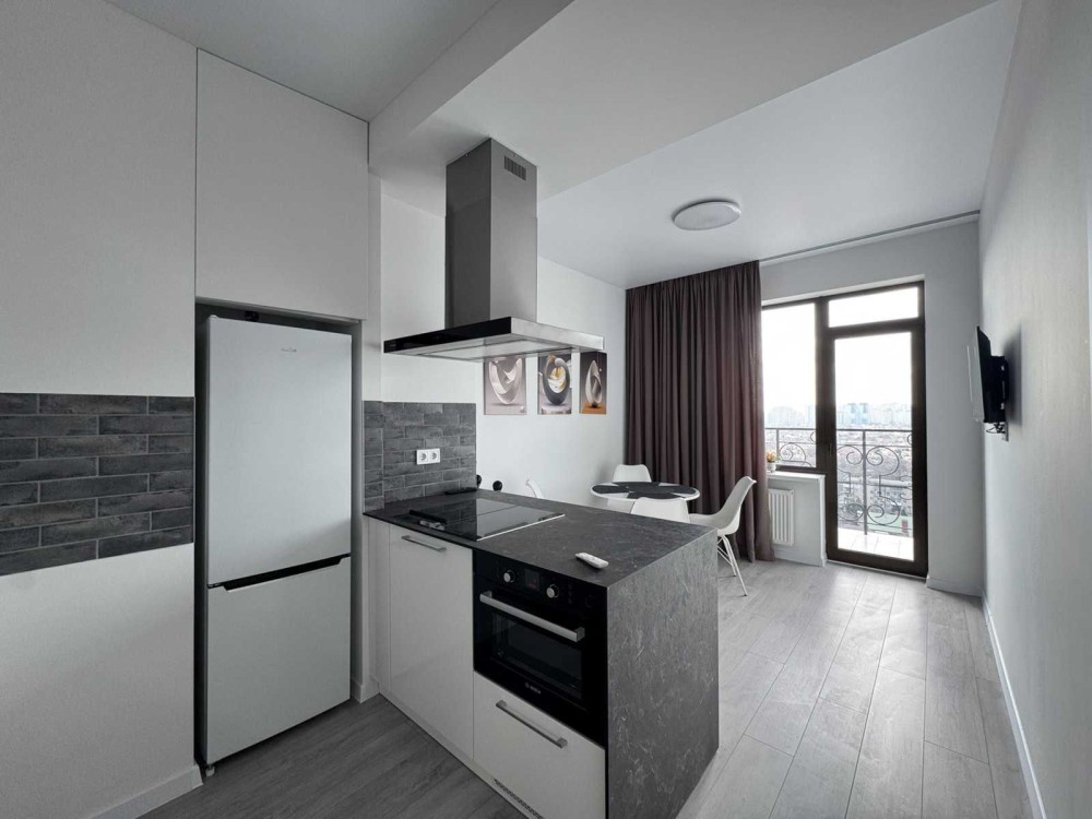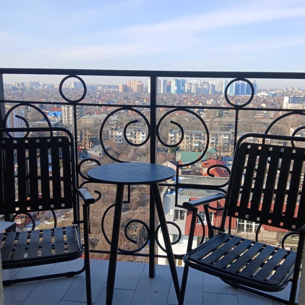 Продумане планування: окрема спальня та кухня з виходом на балкон, на якому відкривається шикарна панорама міста.