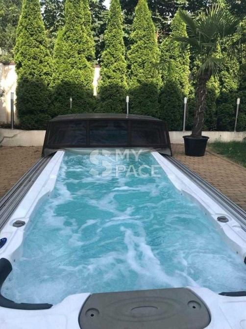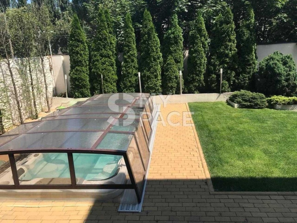 Будинок побудований в сучасному стилі мінімалізм за технологією термодім з плоским дахом і величезним склінням друге світло (фасадний алюміній з розжареним, тонованим склом), у дворі відкритий SPA-басейн 6 х 2, 7 х 1, 35 м з можливістю купатися взимку (вода нагрівається до 46 градусів).