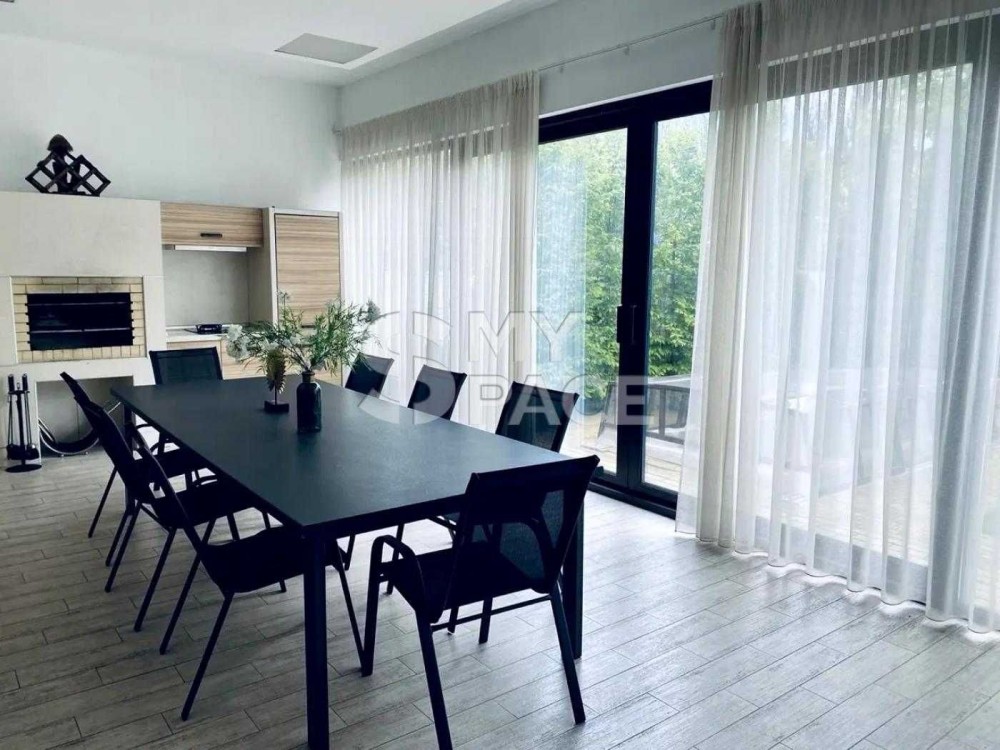 Приміщення з барбекю і розсувною скляною системою знаходиться в будинку. Будинок повністю мебльований і укомплектований технікою, 8 інверторних кондиціонерів, побутова техніка, акустика, будинок повністю оснащений світлодіодним освітленням.