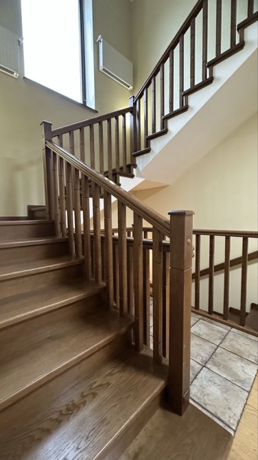 Підлога у житлових кімнатах , сходи, міжкімнатні двері виготовлені из натурального дуба. Більша частина меблів та фасади кухні виготовлені також з натуральної деревини.