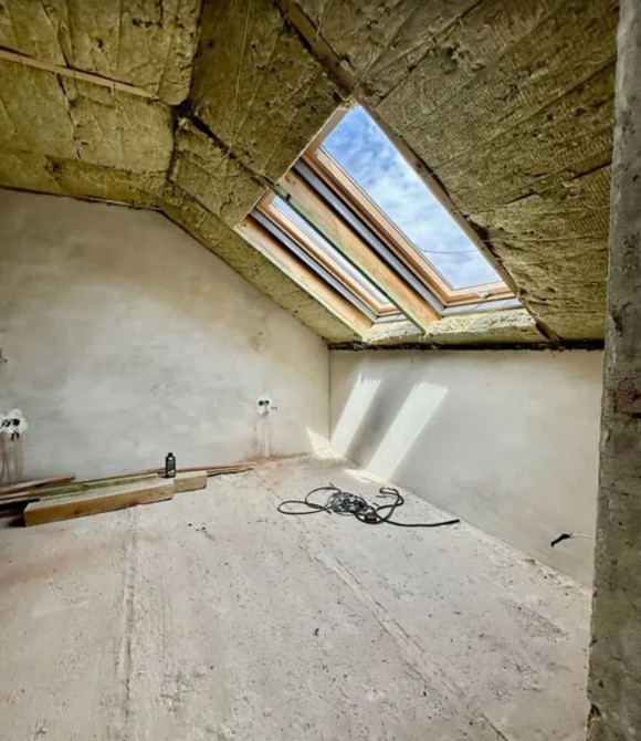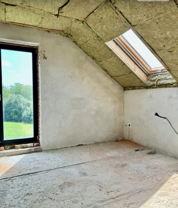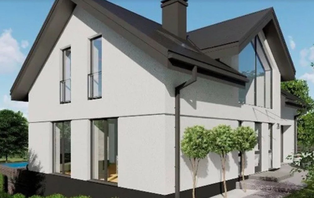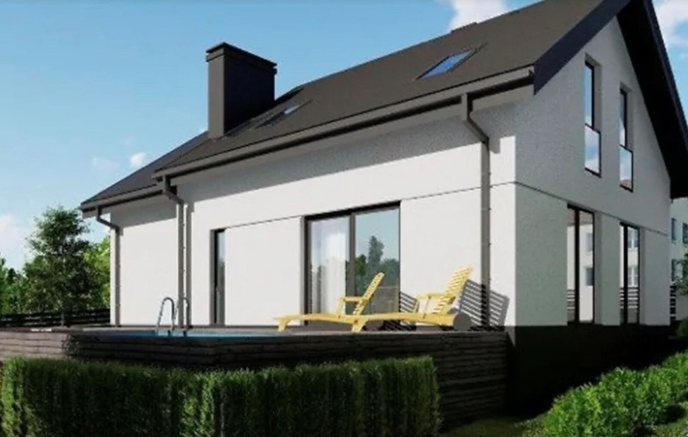 Дах та водостічна система Ruuki Hyygge(Найдорожча металочерепиця з усіх). Гідроізоляційна мембрана та 20 см. утеплення базальтовою ватою. Посилені гаражні ворота Krispol. Великі мансардні вікна 1.6 м. з теплоізоляційним комплектом, у ванну з вологостійким покриттям.
