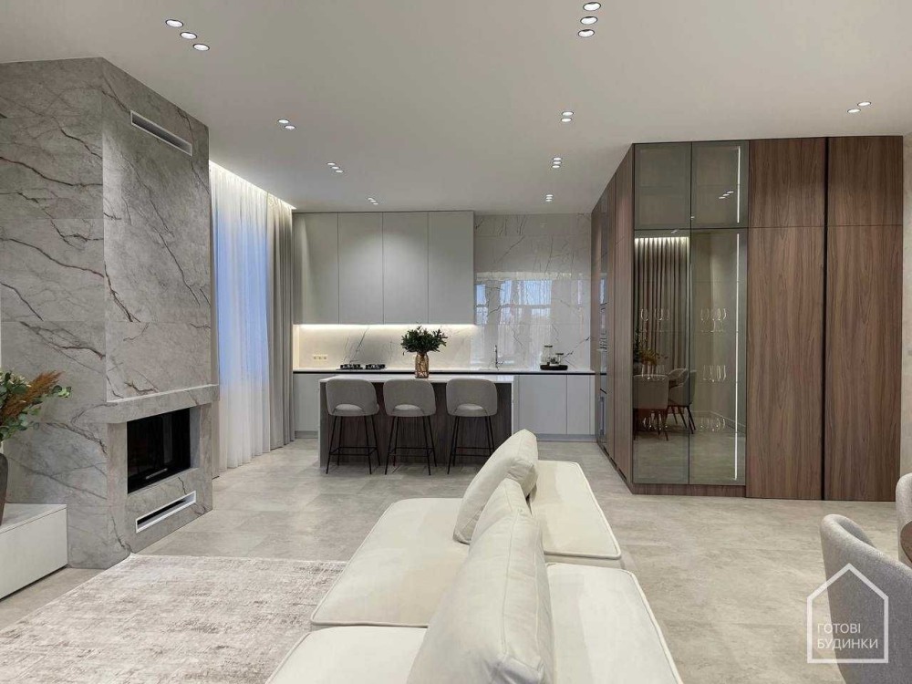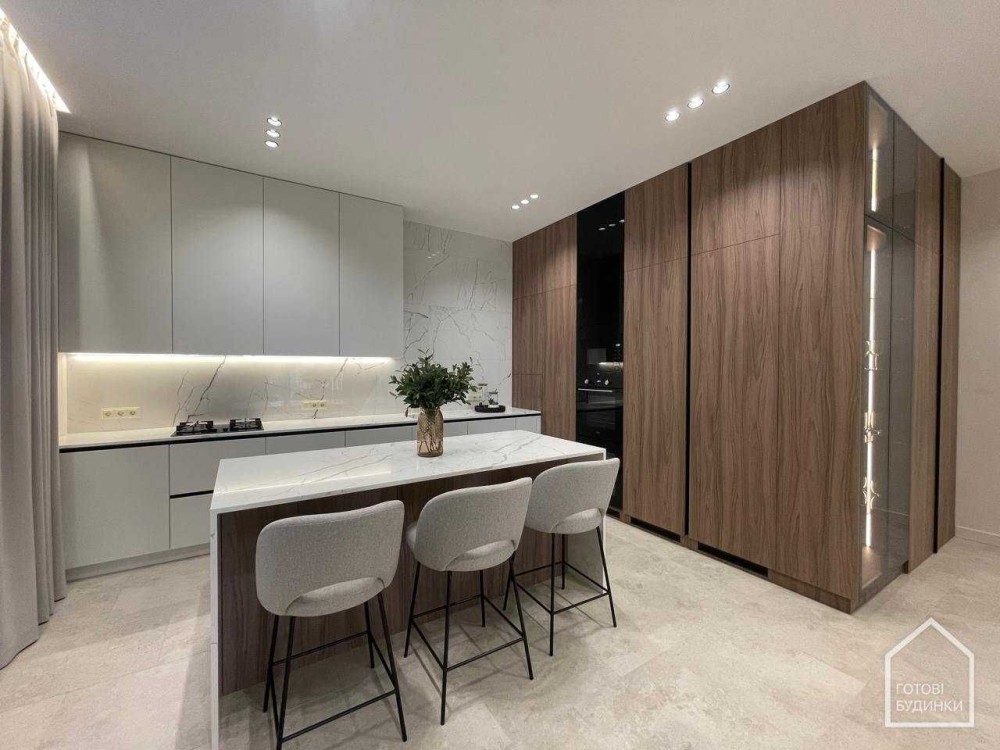 Продаж сучасного будинку з пейзажною ділянкою, дизайнерським укомплектованим ремонтом та гаражем на 2 авто.