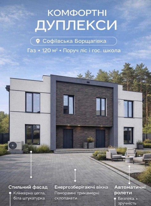 Продається сучасний дуплекс 120 м² у с. Софіївська Борщагівка