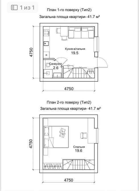 • Загальна площа 42 м2