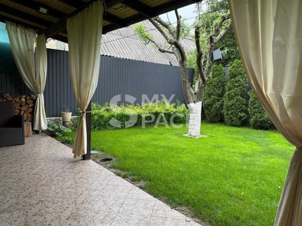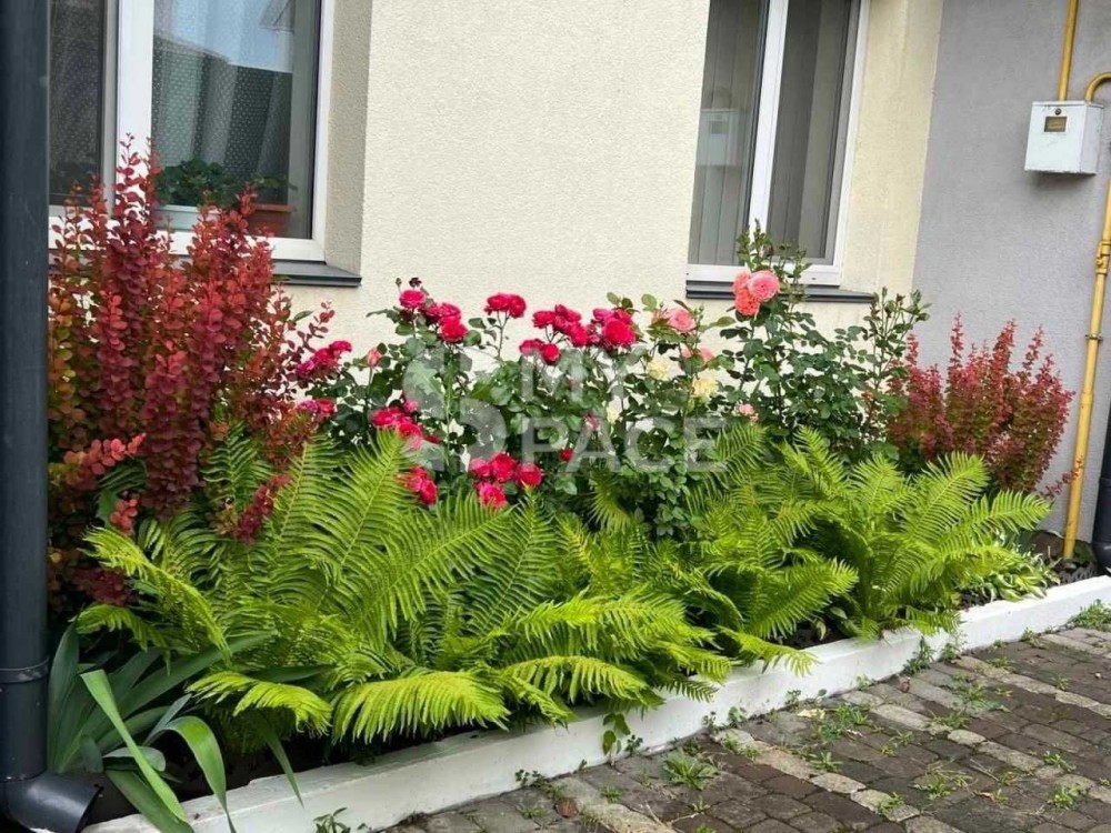 До будинку прилягає ділянка з кущами лохини, півонії, гортензіями та декоративними деревами, велика ділянка з газоном, туями та клумбою з трояндами. На ділянці- автополив газону та крапельний полив туй.
