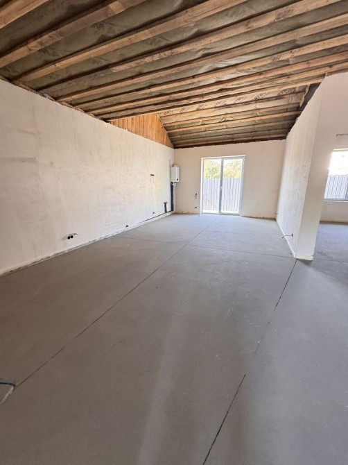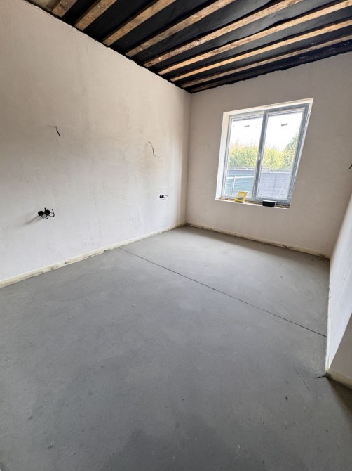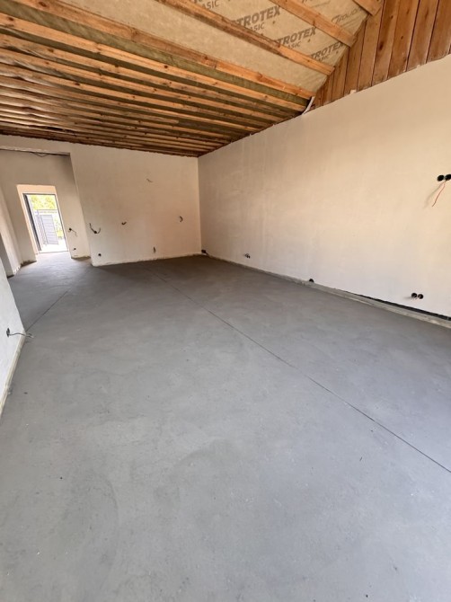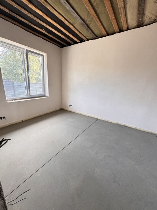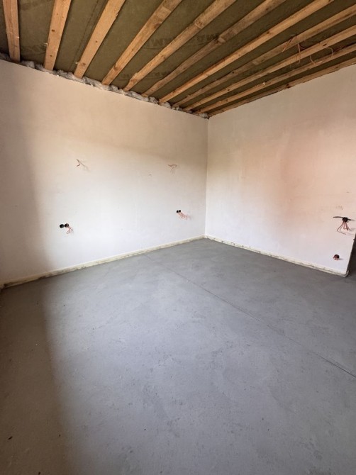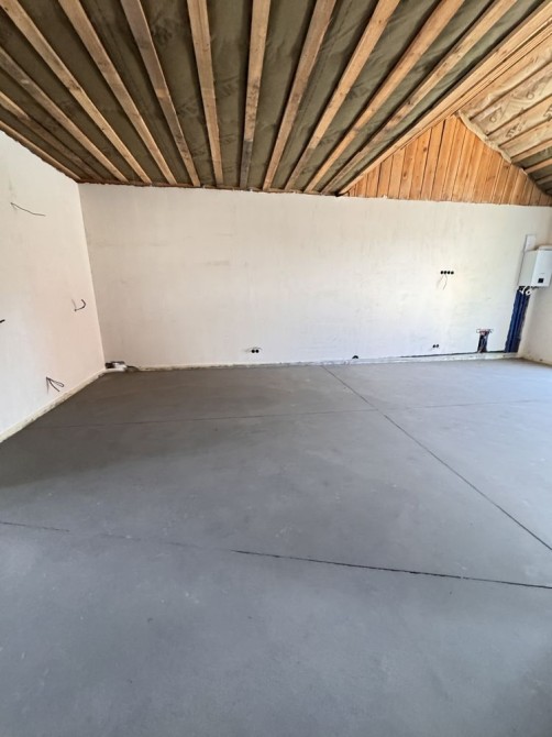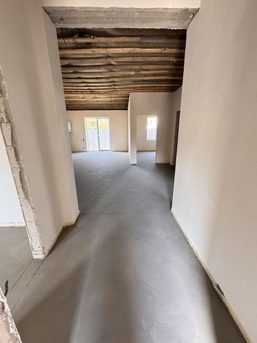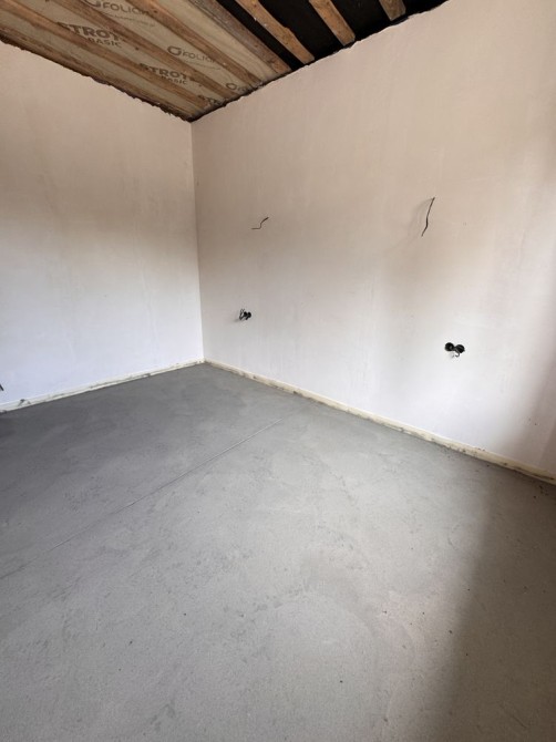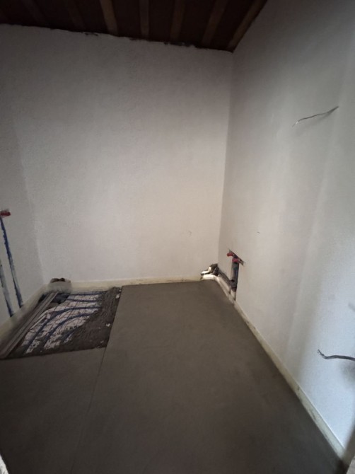 Виконано штукатурку стін, розведено електрику, встановлена тепла водяна підлога. У вартість входить газовий котел.