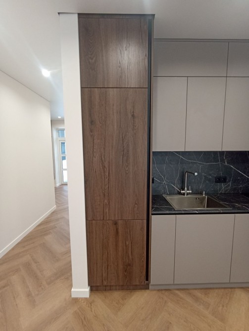 Тепла підлога по всьому периметру,найсучасніший вініловий паркет ялинкою,що не боїться вологи і пошкоджень і проводить тепло краще ламінату.Ретельно підібрана побутова техніка(інверторний холодильник і кондиціонер,індукційна плита,вбудовані посудомийка,мікрохвильовка та духова шафа відомих брендів,витяжка з безконтактним сенсором.Панорамні вікна з кухні-студії та спальні виходять на задній двір де можна облаштувати барбекю зону,невеликий басейн та шезлонги,(світло,вода та каналізація виведені)