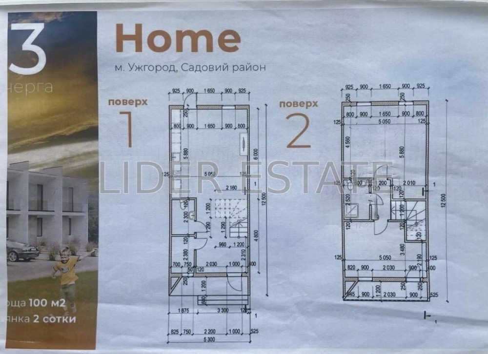 Загальна площа 100 кв.м, ділянка - 2 сотки.