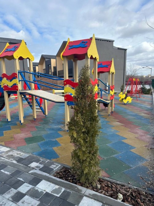 Територія облаштована, є закритий дитячий майданчик. Частина таунхаусів уже заселена — люди проживають постійно.