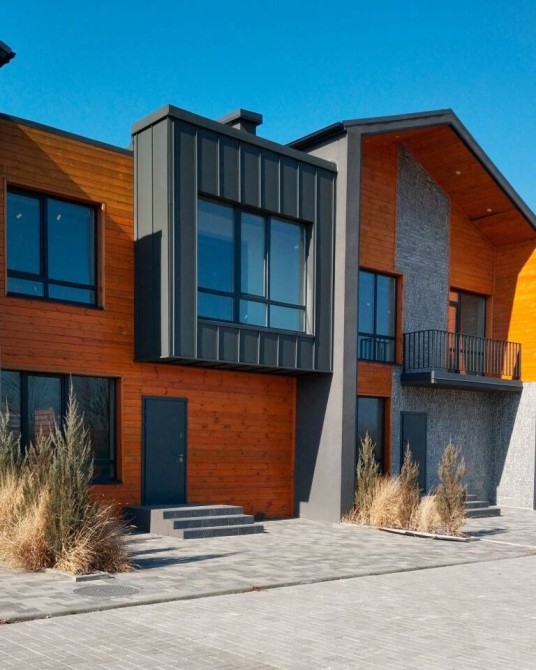 Сучасні двоповерхові таунхауси у новобудові, на закритій території поруч із лісом.