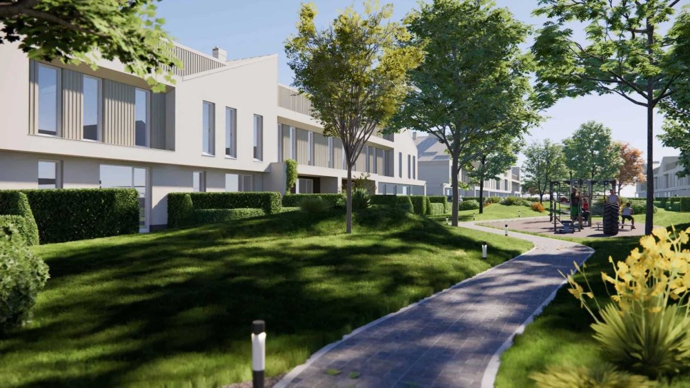 Лише за 10 хвилин на авто ви опиняєтеся у затишному містечку з 56 сучасними таунхаусами, оточеному парками, озерами та свіжим повітрям
