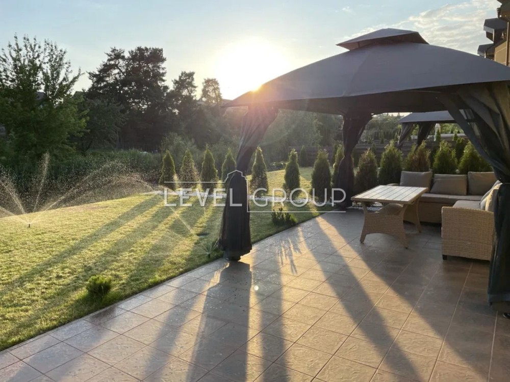 Тераса з шатром і садовими меблями — місце для повільних вечорів і зустрічей.