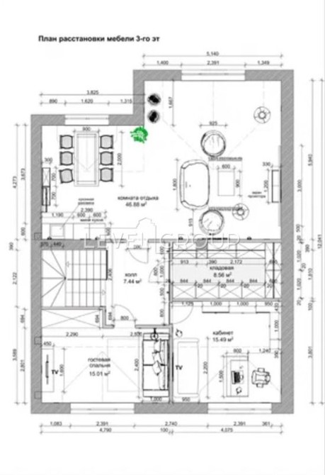 3 поверх — зона відпочинку: простора кімната, кабінет, гардеробна та гостьова спальня