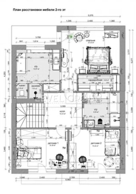 2 поверх — приватний рівень із майстер-спальнею (власна ванна та гардеробна) і двома дитячими кімнатами