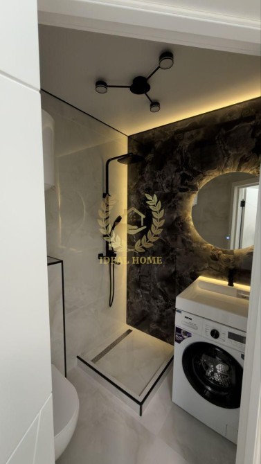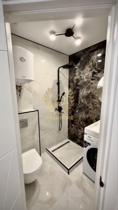 Усередині — сучасна кухня-студія з повним комплектом техніки: варильна поверхня, духова шафа, мікрохвильова піч, витяжка, телевізор та інше необхідне для комфортного проживання. Будинок повністю мебльований та готовий до заселення.