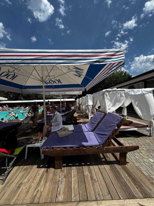 Розважальна зона: загальною площею 2800 кв.м. , озеленення, дитячі атракціони, дорослий та 2 дитячих басейни (один з підігрівом), також є система фільтрації , та система стабілізації тиску, зона бару, туалети, душові, терасна дошка. В наявності є в все необхідне для гарного відпочинку.