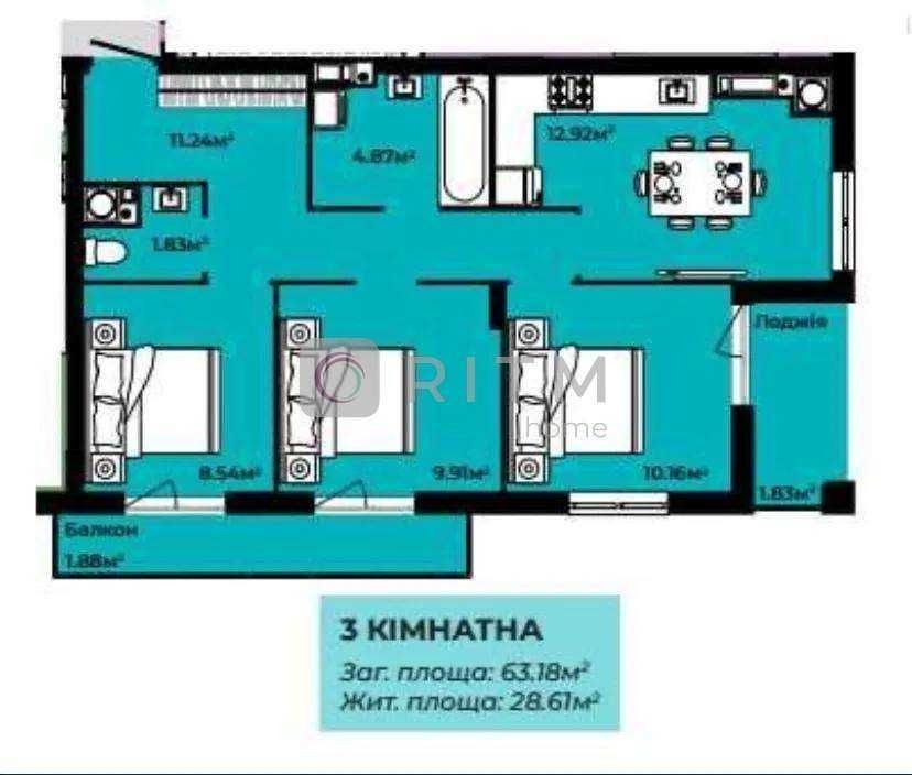 • Трикімнатна