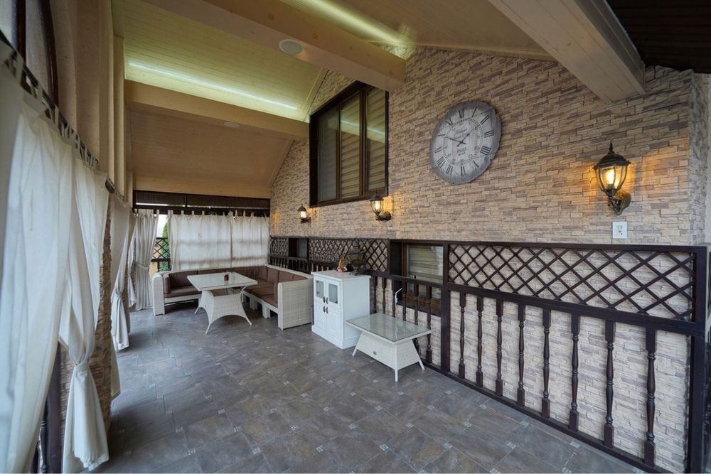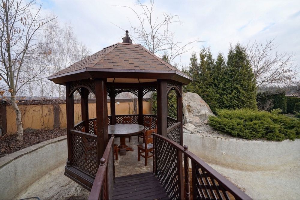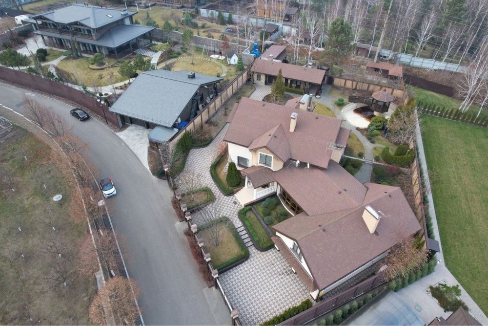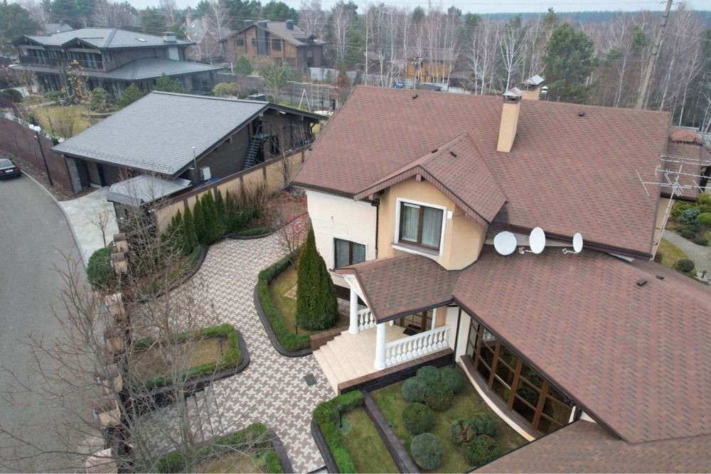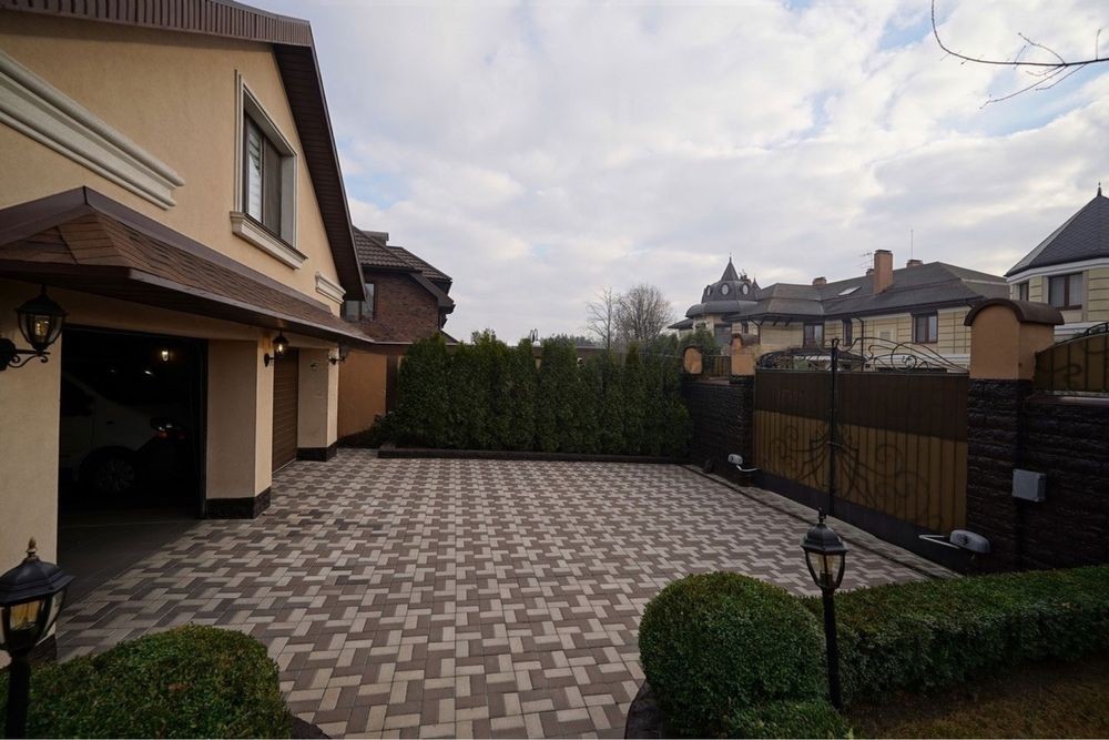 Оздоблення і ремонт виконані з натуральних матеріалів виключно високої якості: німецька сантехніка, італійські меблі, сучасна побутова техніка, покриття підлоги-паркетна дошка і мармур з підігрівом; своє опалення (газ і тепловий насос). Будинок має гараж на 2 повноцінних місця для авто, також перед гаражем додаткове місце для 2-3 авто. Ділянка 16,7 соток з ландшафтним дизайном, басейн з фонтаном та літнім душем. Окрема літня кухня з санвузлом та місцем для зберігання хоз приладдя.
