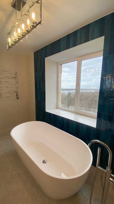 Окремо стояча кам’яна ванна біля вікна — це справжній арт-об’єкт. Приймати ванну, милуючись водною гладдю Дніпра та заходами сонця — рівень життя, який можуть дозволити собі одиниці. Атмосфера п’ятизіркового готелю щодня у вас вдома.
