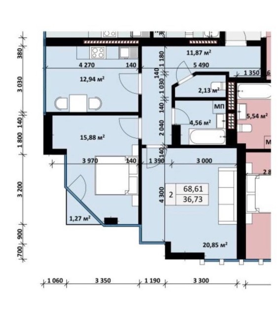 • Загальна площа 68.61 м2