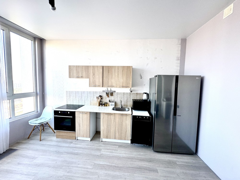 Продаж 1-к квартири вул. Зарічна 2. Найвидовіша квартира в ЖК Славутич. В квартирі зроблено дизайнерський ремонт, є вся необхідна побутова техніка: посудомийка, вбудований холодильник, сенсорна витяжка, варочна поверхня, мікрохвильовка, духовка, пральна машинка з функцією осушки, кондиціонер, телевізори, душ, ванна, інсталяція, парящя стеля, паряще ліжко, декоративна оздоблення стін-штукатурка В ЖК цілодобова охорона на камери відеоспостереження. 044 200 10 80