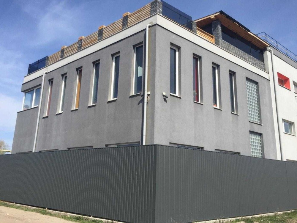 - Гараж із ролетами, виробничі приміщення з ролетами, парковка для працівників та відвідувачів, автоматичні ворота, КПП із системою контролю робочого часу.