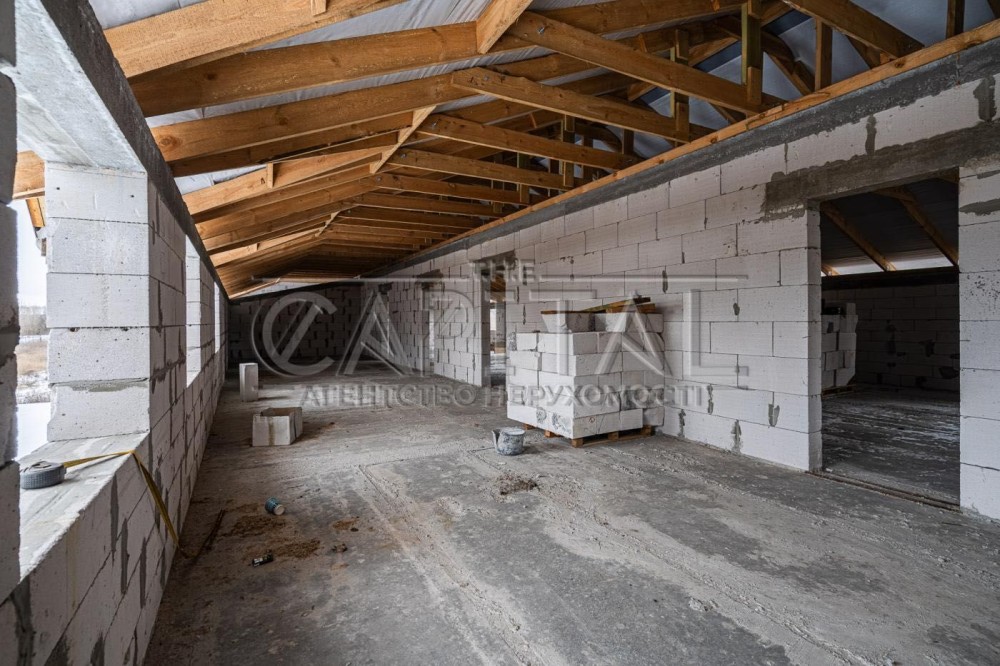 Одноповерхова — 450 м². Конструктивно передбачена можливість добудови 2-го поверху.