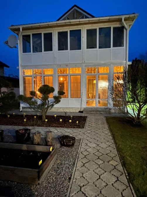 Адреса: Київська область, Макарівський район, село Колонщина, котеджне містечко Лісова пісня (25 км. від Києва по Житомирській трасі). Асфальтований підʼїзд від траси до самого будинку. Земельна ділянка площею 6 соток (36*16), двоповерховий будинок із SIP-панелей (канадська каркасно-панельна технологія), під дахом із металочерепиці площею 97 кв.м; одноповерховий гостьовий будиночок площею 20 кв.м з лазнею та коморою; піч-мангал; паркан – з бетону та з металевого євроштакетника, автоматичні відкатні ворота, каналізація – 3 переливні бетоні кільця. Прибудинкова територія облаштована облаштовано за євростандартами ландшафту . В наявності плодові дерева, кущи . Квіти, та газони мають автоматичний полив. Е сім високих гряд під садівництво, облаштованих крапельним поливом. Також в садочку е зона відпочинку з відкритим вогнищем. Свердловина від котеджного селища, артезіанська вода. У будинку – 1 поверх – кухня, вітальня, санвузол, передпокій, вбиральня, 2 поверх – дві спальні, вбиральня, санвузол. Вікна з трикамерними склопакетами, камін, електробойлер, опалення - тепла підлога; електрика - 8 кВт на будинок (включивши опалення лише на дві години, можна не обігрівати потім будинок протягом доби), сухий облаштований під зберігання дах. Будинок повністю мебльований, з побутовою технікою. Вартість – 135 000 доларів (на комісію не претендую). Телефонуйте на вайбер.