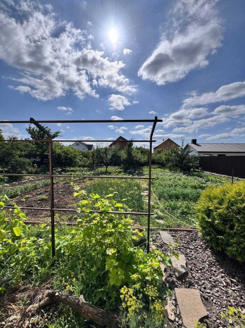 Ділянка — рівна, правильної прямокутної форми, облаштований сад з плодовими деревами, город зона відпочинку.