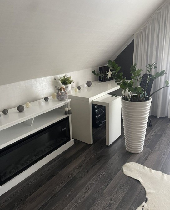 Планування: Перший поверх- Кухня-студія 50кв.м, діючий дров'яний камін з розводкою на другий поверх, загальна гардеробна, спальня кімната з гардеробною, суміжний сан.вузол. Тепла підлога по всьому першому поверху.